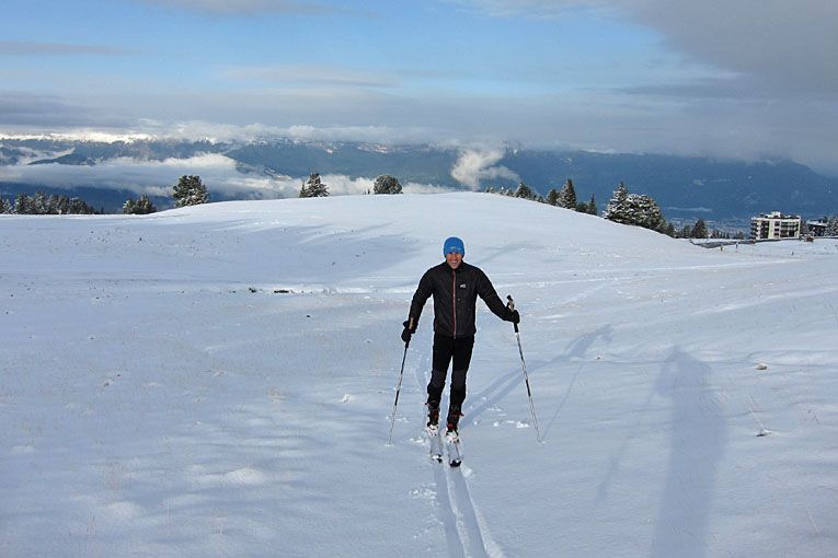 Ma plus mauvaise croix en terme de skiabilité mais le plaisir entier de tâter la première neige et c'est toujours mieux en glissant avec de vieux skis qu'en baskets.