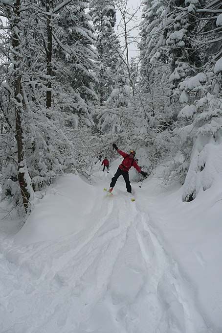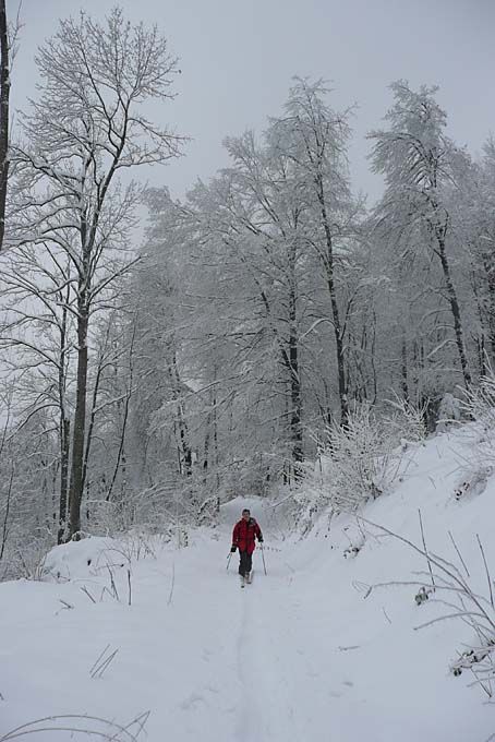 Enneigement excellent de la plaine jusqu'à 700-800 m, déficitaire ensuite. Dans les forêts de conifères ça ne skie pas encore => rester sur les chemins