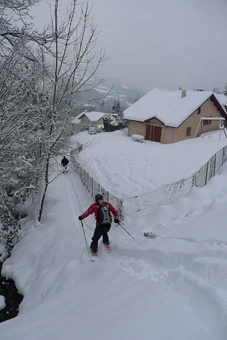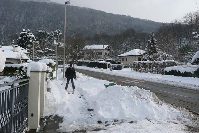 A chaque chute de neige en plaine, j'essaie de faire une sortie ski sur la ville. En voilà une de plus qui, sans surprise, n'était pas du grand ski mais une manière fort agréable de se promener. Ca touche sans gravité dans la partie 1200=>800m quand il y a des conifères qui ont retenu toute la neige. Le meilleur est la partie basse entre les 4S et Poisat, presque entièrement damée par les passages. Fin en footing avec le matos sur le sac jusqu'à Grenoble centre. On se demande un peu où on est quand on entre dans la ville skis aux pieds. Vraiment exotique !