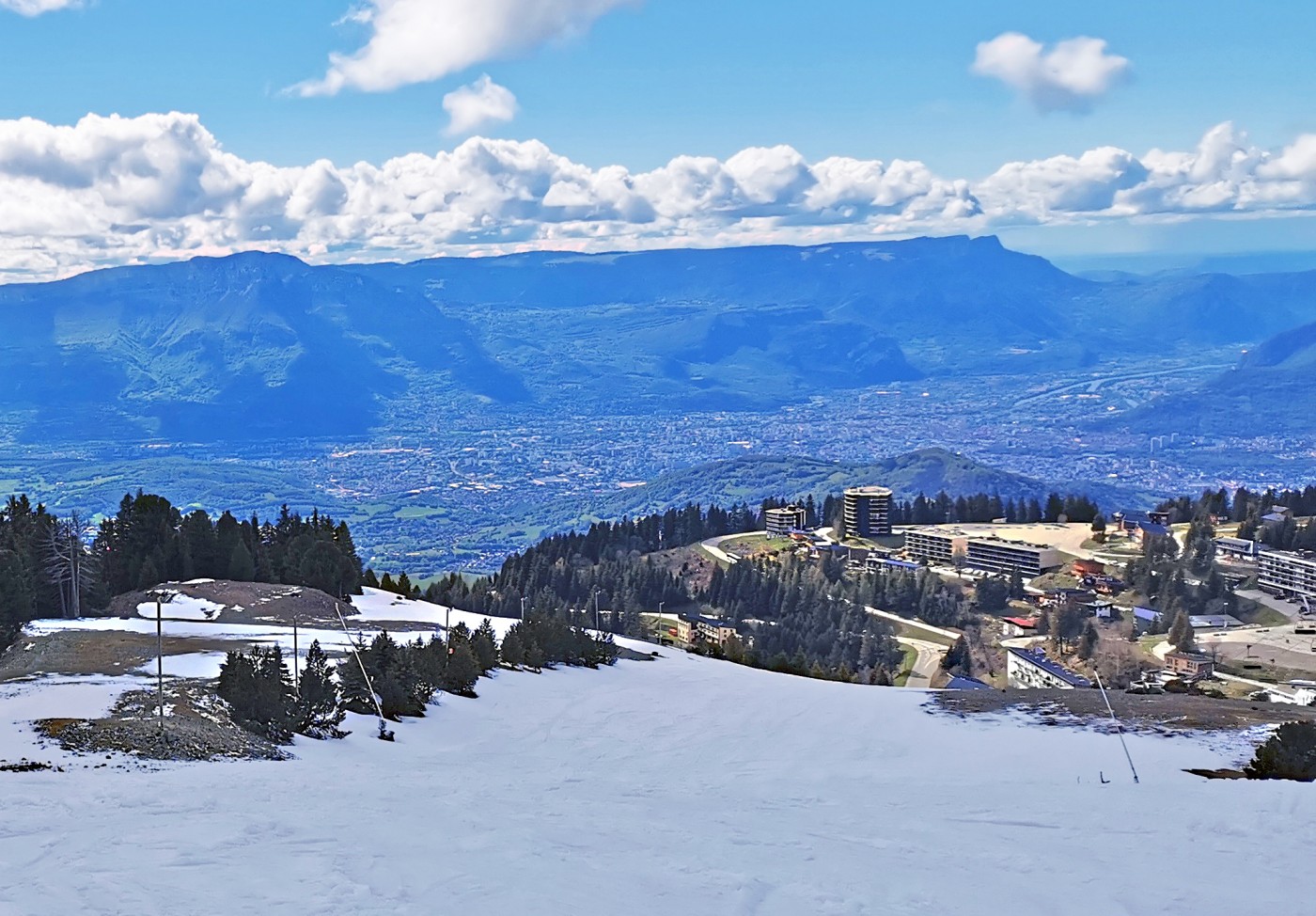 Très bon ski sur le croix de Chamrousse, premier sommet skié en France (1889). Sans visi j'ai préféré le tricotage à un van. Chaussage à 1650, déchaussage à 1660 à 0,05 km du parking. Le stock pourrait tenir au-dessus de 1750-1800 en orientation favorable. Pour la qualité du ski et éviter le réchauffement il fallait éviter les éclaircies, qui sont devenues plus durables après 16h00.