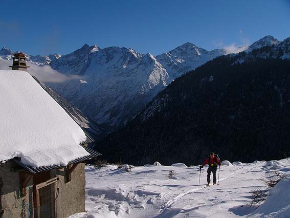 De bonnes infos d'OLE et une idée de dernière minute d'Etienne ont permis une belle rando avec de bonnes conditions de neige dans ce secteur calme qui réserve du ski sauvage. Le couloir est en bonnes conditions et s'attaque du sommet (soufflé sur les 50m sommitaux mais ça passe à skis). L'approche peut paraître longue par la piste mais c'est le seul moyen d'accéder dans ce vallon à moins de venir à vue par la Salette. Et au retour ça file bien sans pousser sur les bâtons.