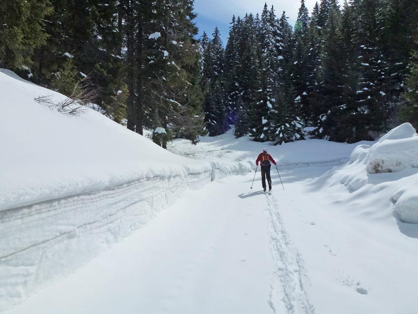 RAS. nouvelle confirmation que la montée de B11 par le triangle ouest est l'accès le plus sûr au taillefer, tous versants confondus, y compris les moins raides. excellente neige sans crampons. la forêt se skiait encore entre 1650 et 1500 m, mais cela ne durera pas. idem pour la route où le goudron apparait parfois.