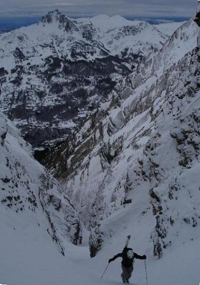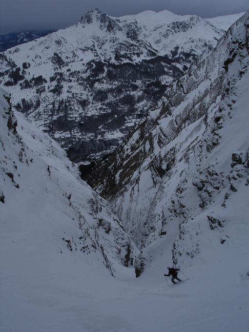 Une jolie exploration dans ce couloir du Maou Riou, dans une ambiance "canyon" bien encaissé. Nous l'avions repéré depuis les aiguilles de Chabrières et imaginé une sortie (cachée) sur la crête, tout s'est révélé conforme à nos aspirations !