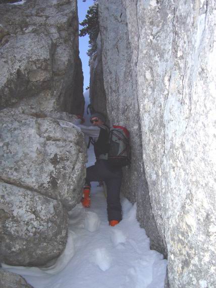 C'est vraiment un très belle traversée, de la vraie Chartreuse sauvage entre Dent de Crolle et col de Bellefond (aucune de trace sur cette partie à part au Prayet). Bonne poudreuse encore vierge en face est des Lances de Malissard, couloir en virgule plus très bon (trop de passages à 12h30, heure de notre descente) mais bon ce n?était pas le but de la matinée. La navette de voiture reste très courte par rapport à la qualité de la course. D+/D- : 1350/1700
