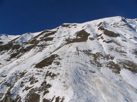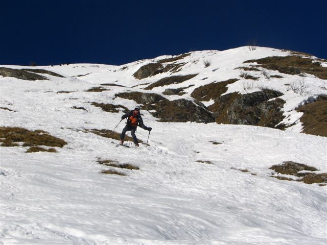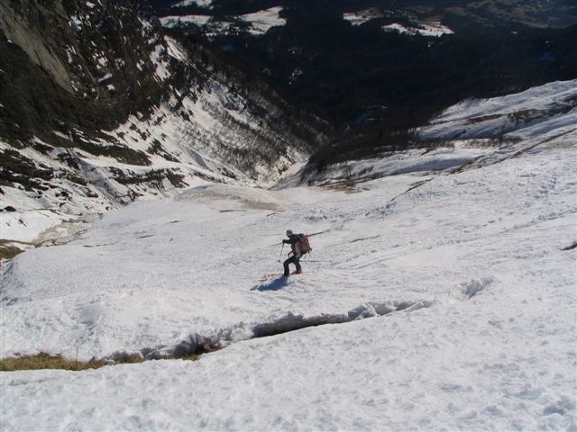 Versant SE insuffisamment transformé mais skiable, versants NE encore tout en poudre>1100 (itinéraire de montée - creux du Cayon).