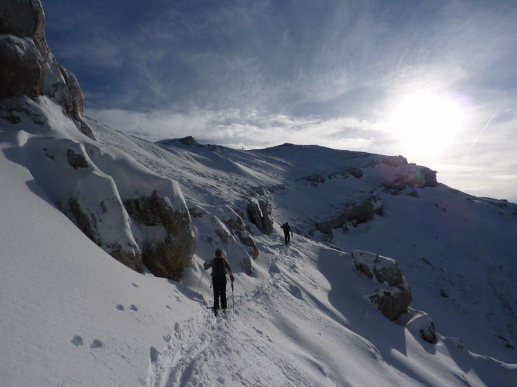 Montée intégrale en peaux, sauf sur 1 mètre pour passer la marche où il y a le câble.
