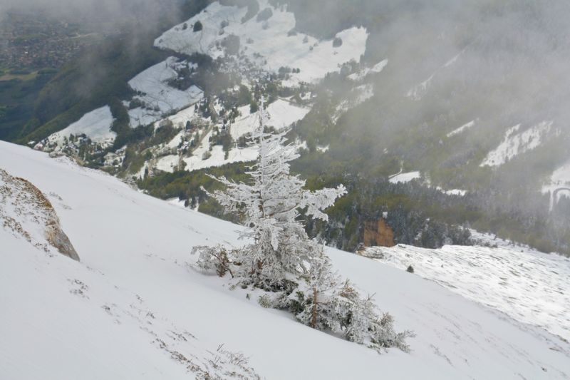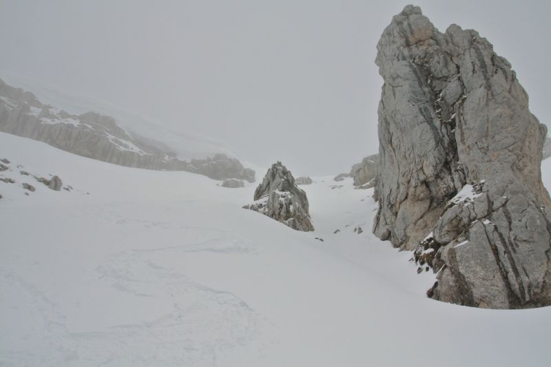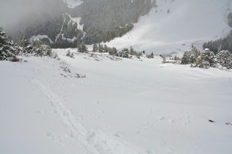 La couche de fraîche glisse facilement sous les skis quand elle repose sur de la vieille neige de névé sur les pentes >35°. J'ai fait partir, en ayant pris mes précautions, le goulet sous le câble, ce qui a fait une petite plaque qui a fini par plonger dans la Gorgette ! Sinon, sous-couche (névé) sur 60% de la descente quand même.