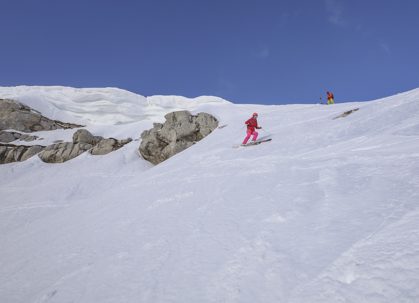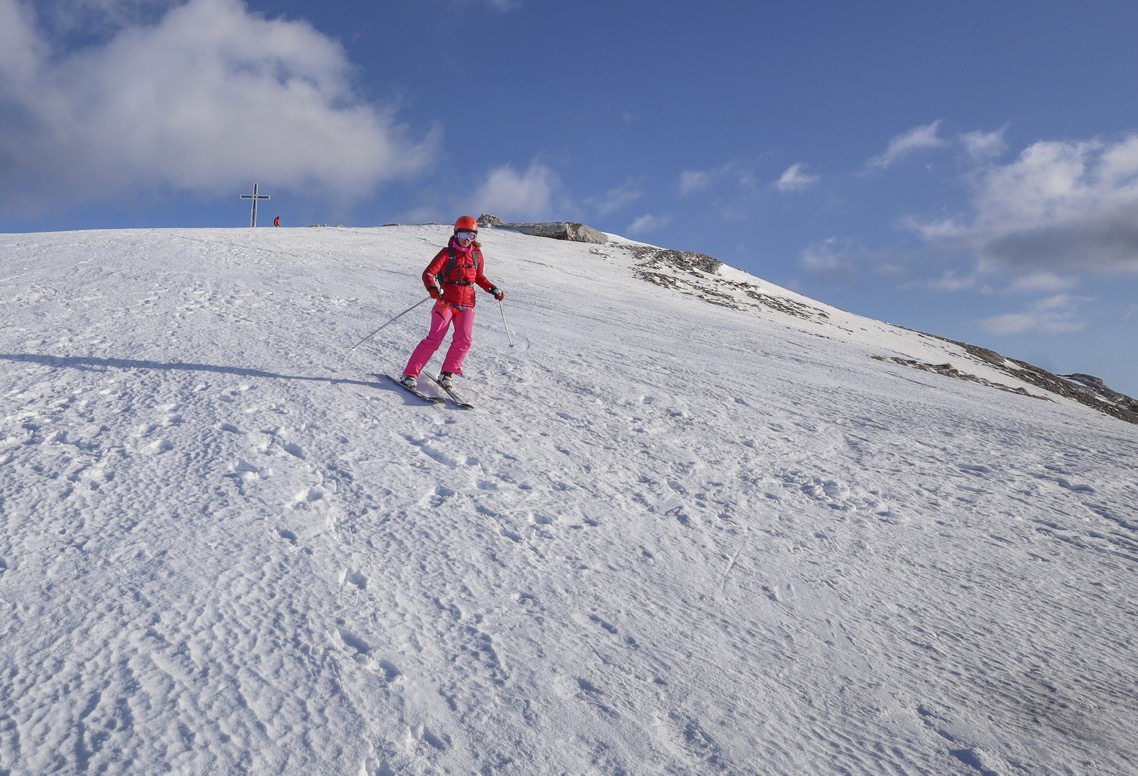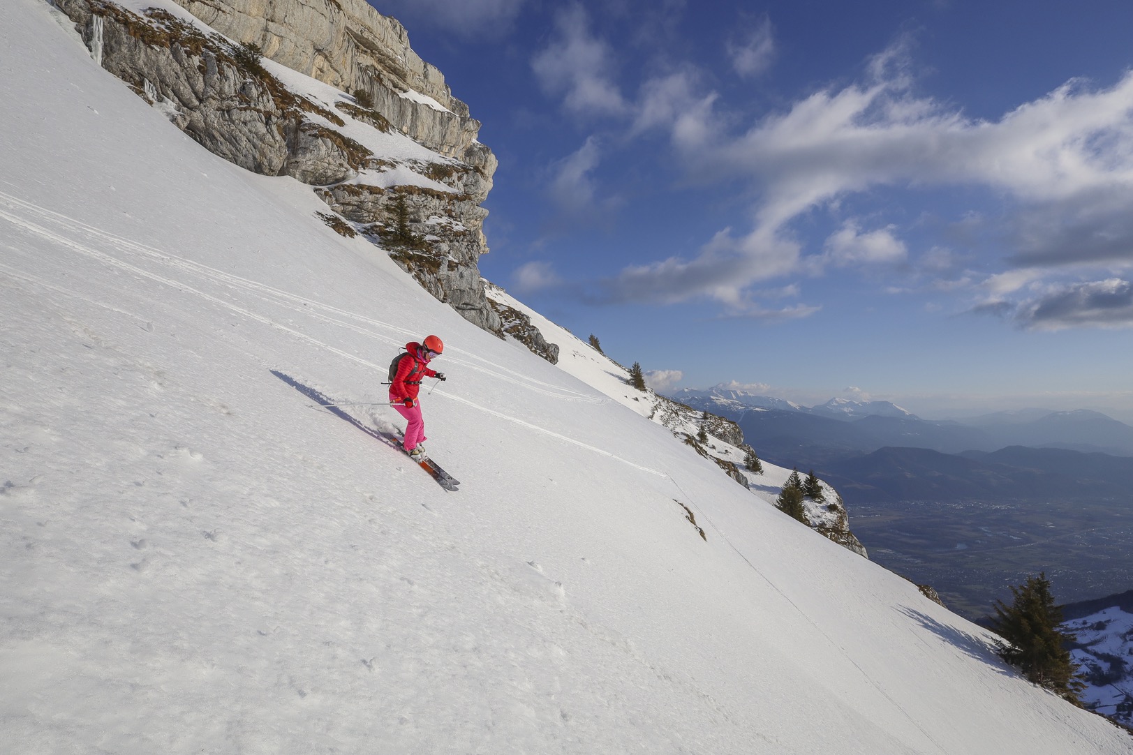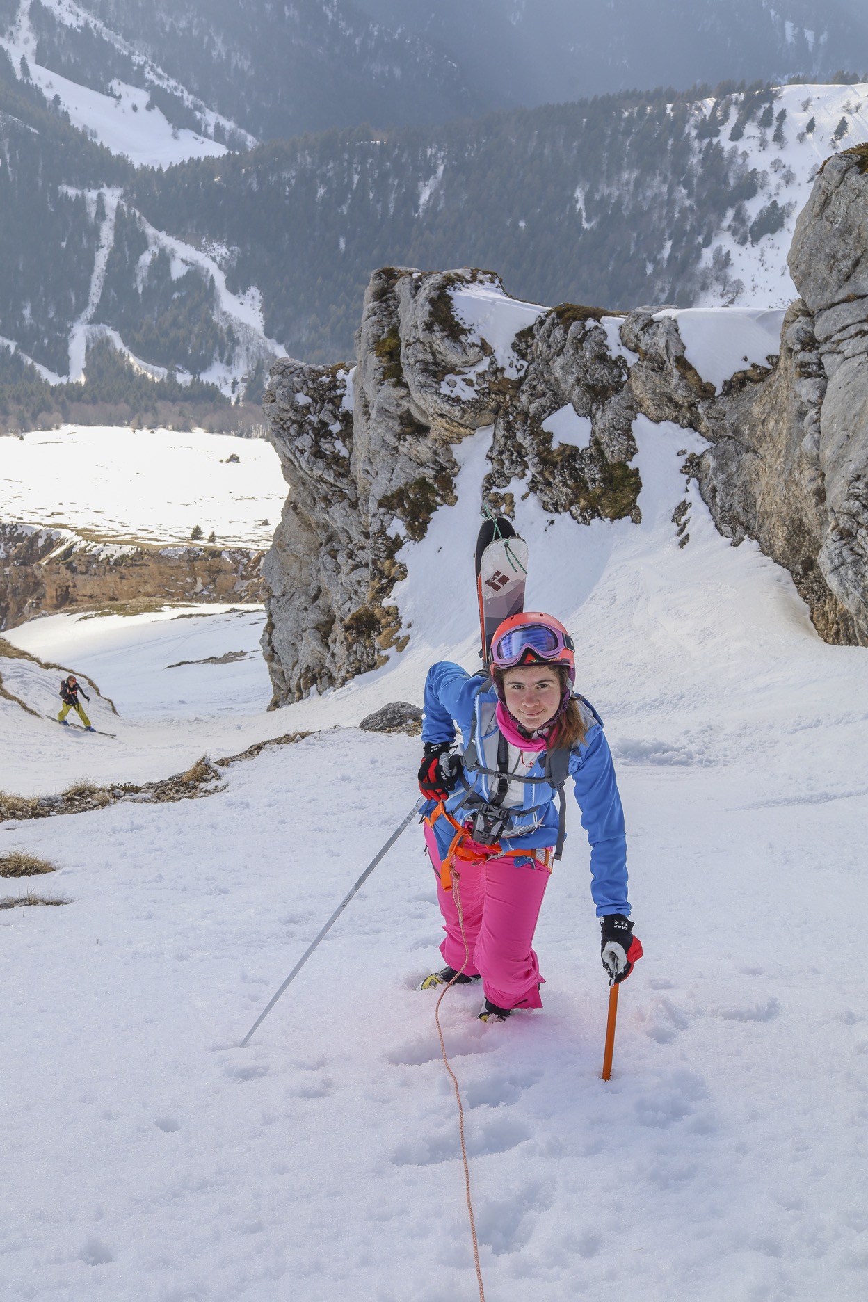 Première pour Stella, encordée à la montée dans le pas de l'Oeille mais sans filet à la descente quoique très bien surveillée. Avec ce genre de neiges, aucune difficulté pour elle mais il faut rester vigilant.