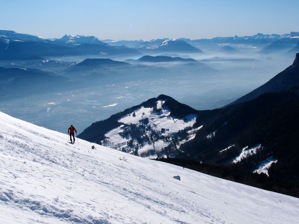 Une Dent de Crolles Xpress pour la pause de midi, skiabilité excellente avec une montée efficace dans le pas de l'Oeille. Le crux du jour était de ne pas arriver trop en retard au boulot. Pour cela il a fallu négocier avec les vacanciers tentant de franchir l'insurmontable montée en voiture et un guenillage en règle pour mettre les chaînes. Pas facile de leur faire admettre que ça ne servait à rien d'essayer d'aller plus haut !!!!!! Un nombre incroyable de voitures circulaient tout au long de la route !