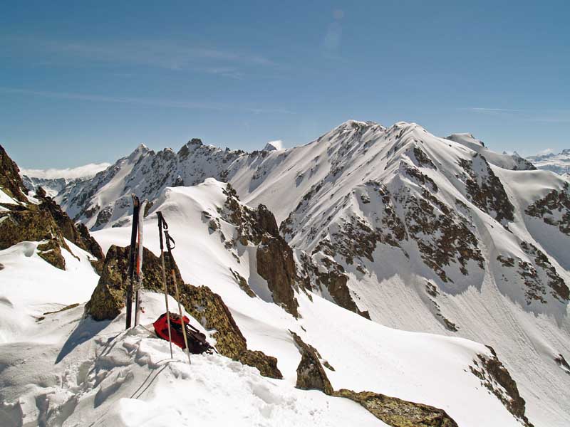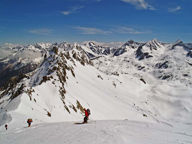 Encore pas trop mal de neige. Heureuse surprise malgré l'absence de regel ou le faible regel, la descente a été plus que correcte, voire bonne. Seul "hic" c'est entre 1700 et 1900 m, le sable tombé en avril qui rend la neige peu glissante et plutôt physique.