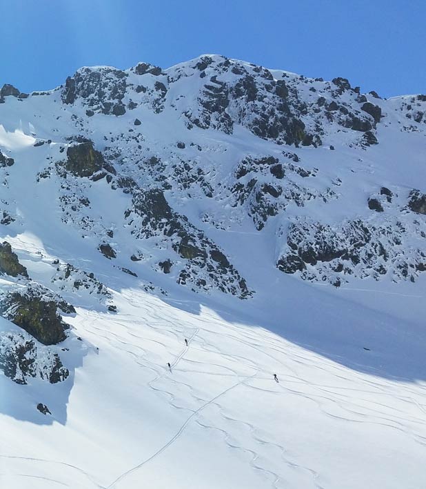 La neige a un peu subi les assauts du vent et la poudre n'est pas ultra légère mais avec 100 au patin, c'est excellent à la descente. En revanche, tracer est un peu plus difficile. Une grosse plaque partie aux Illettes (face ouest). Il faut sans doute attendre un peu avant de se lancer dans n'importe quelle pente.
