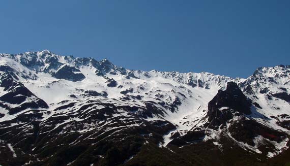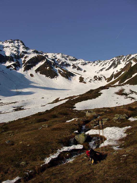 itinéraire classique de la face N. On trouve la neige au-dessus de la barraque de la Pra vers 1750, mais l'enneigement continu est vers 1900