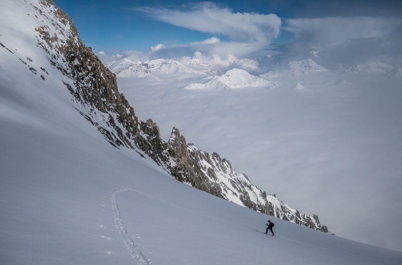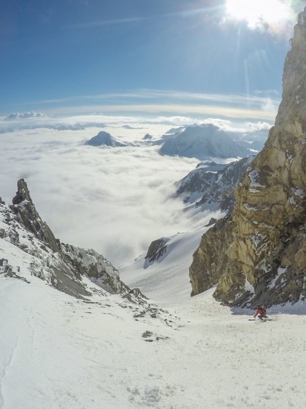Partis sur un coup de tête à 13h de Grenoble pour aller chercher le soleil en (très) haute montagne, nous redoutions la nivo dans la chaise du Pape, d'autant plus avec la grosse chaleur de l'arrivée des RM jusqu'au pied du couloir de la brèche de Lauza. Au final, c'était tout bon grâce à l'isotherme 0°C bien bas et après être montés en tee-shirt sans gants, nous avons fini par avoir toutes les couches au sommet. Montée intégralement à peaux sauf les 10 derniers mètres ce qui est appréciable.