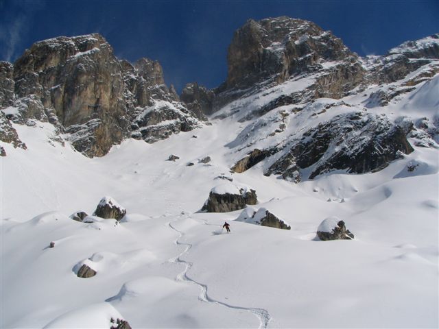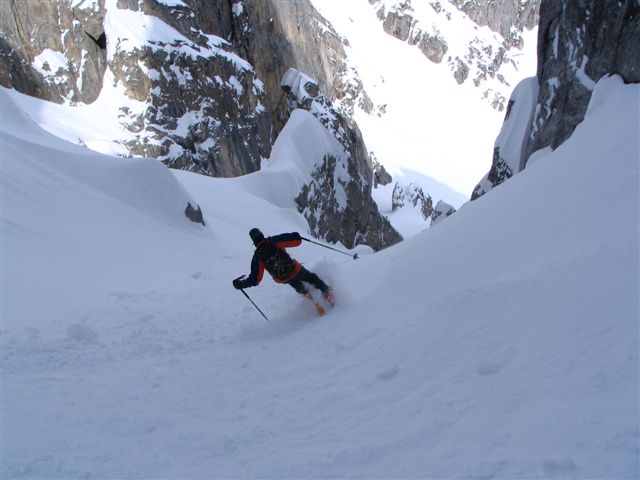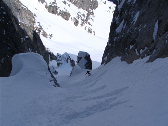 Couloir en poudre un peu travaillée par le vent mais excellent dans l'ensemble.