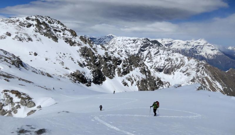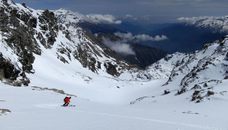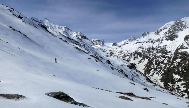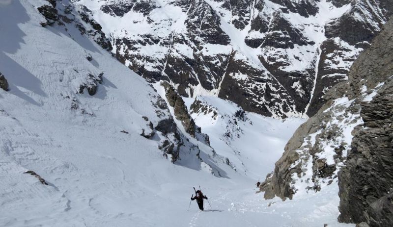 J1 : Plan de la Vie (val d'ambin)-> dents d'ambin par couloir W -> but couloir N -> descente SE jusqu'à 2500m -> but rampe dégarnie -> remontée sous mont d'Ambin -> descente ref. Vaccarone (hiver = 12 places, propre, couvertures)