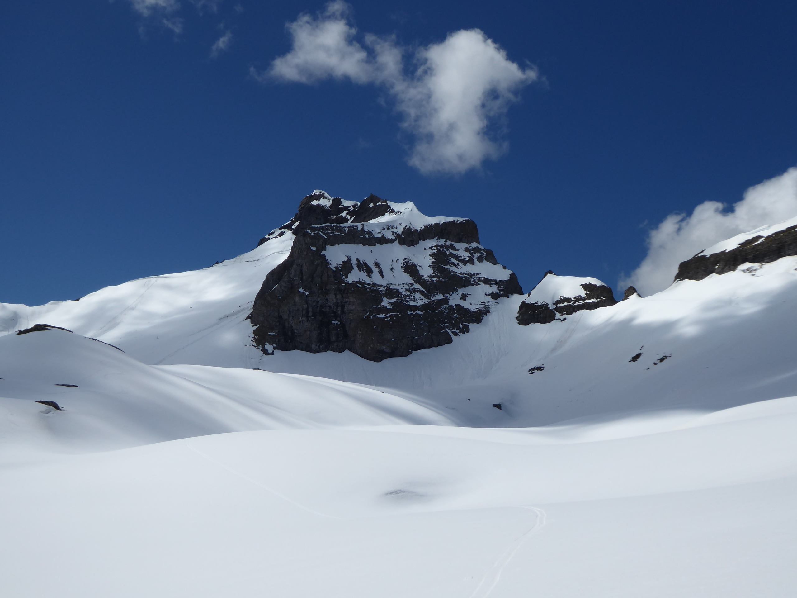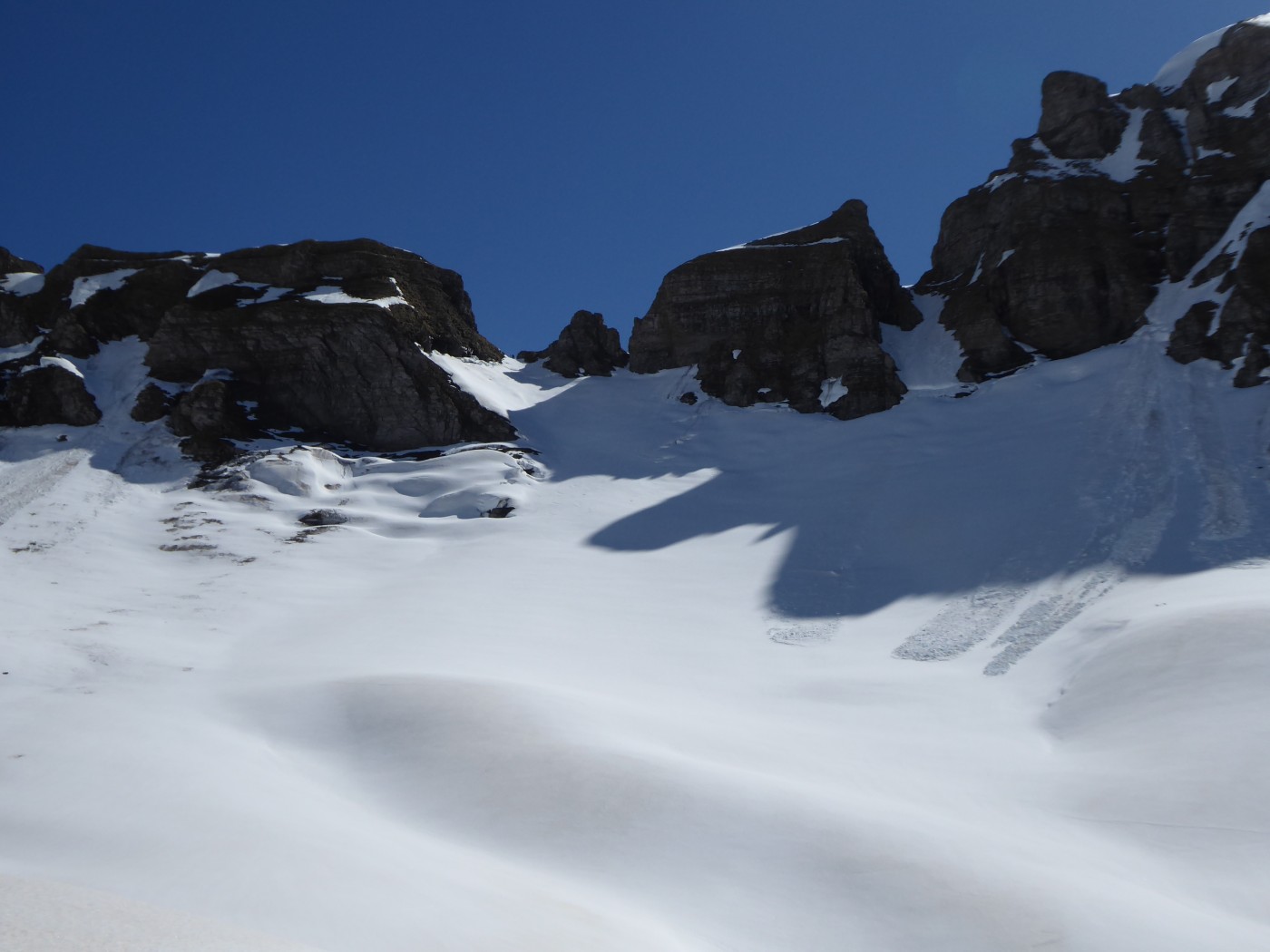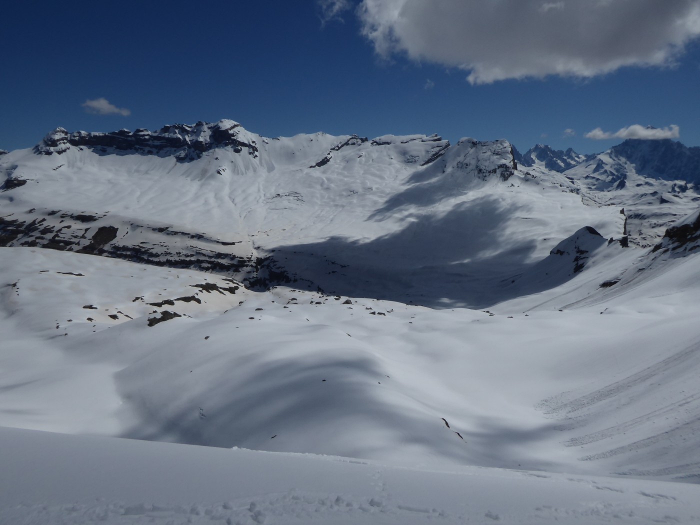 Bonnes conditions de ski avec une neige transfo juste un peu molle dans le versant E du col de la Portette.