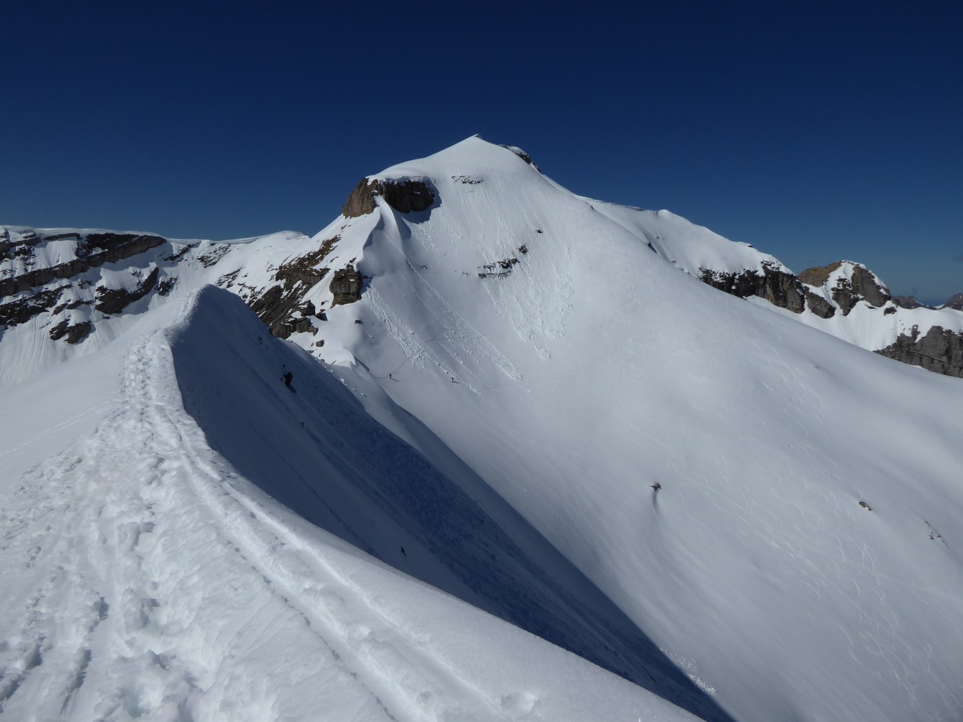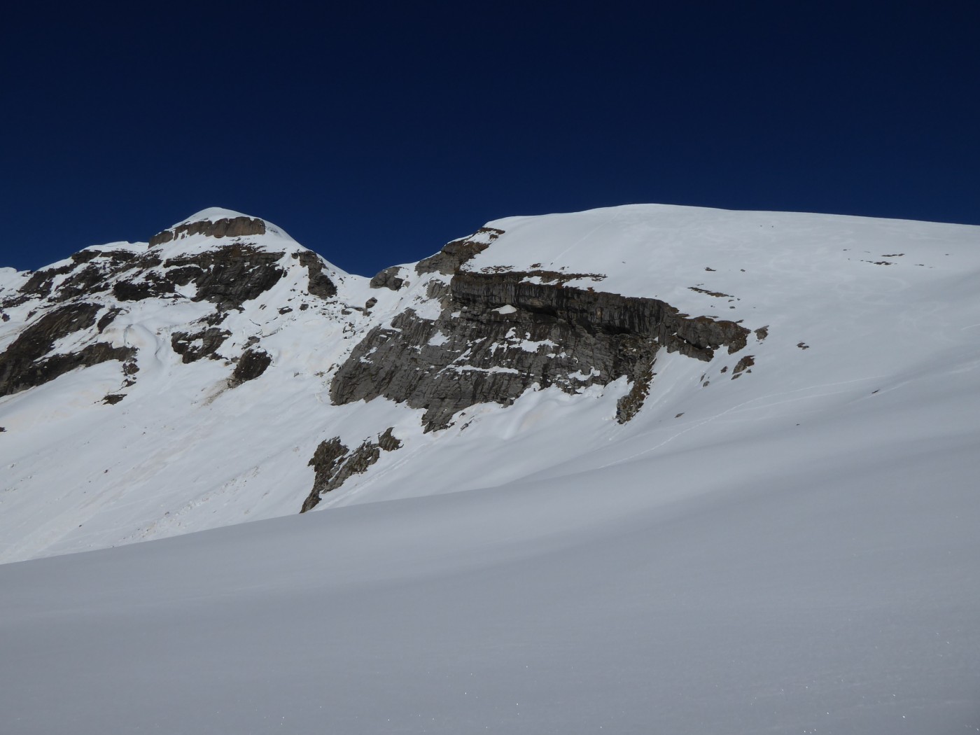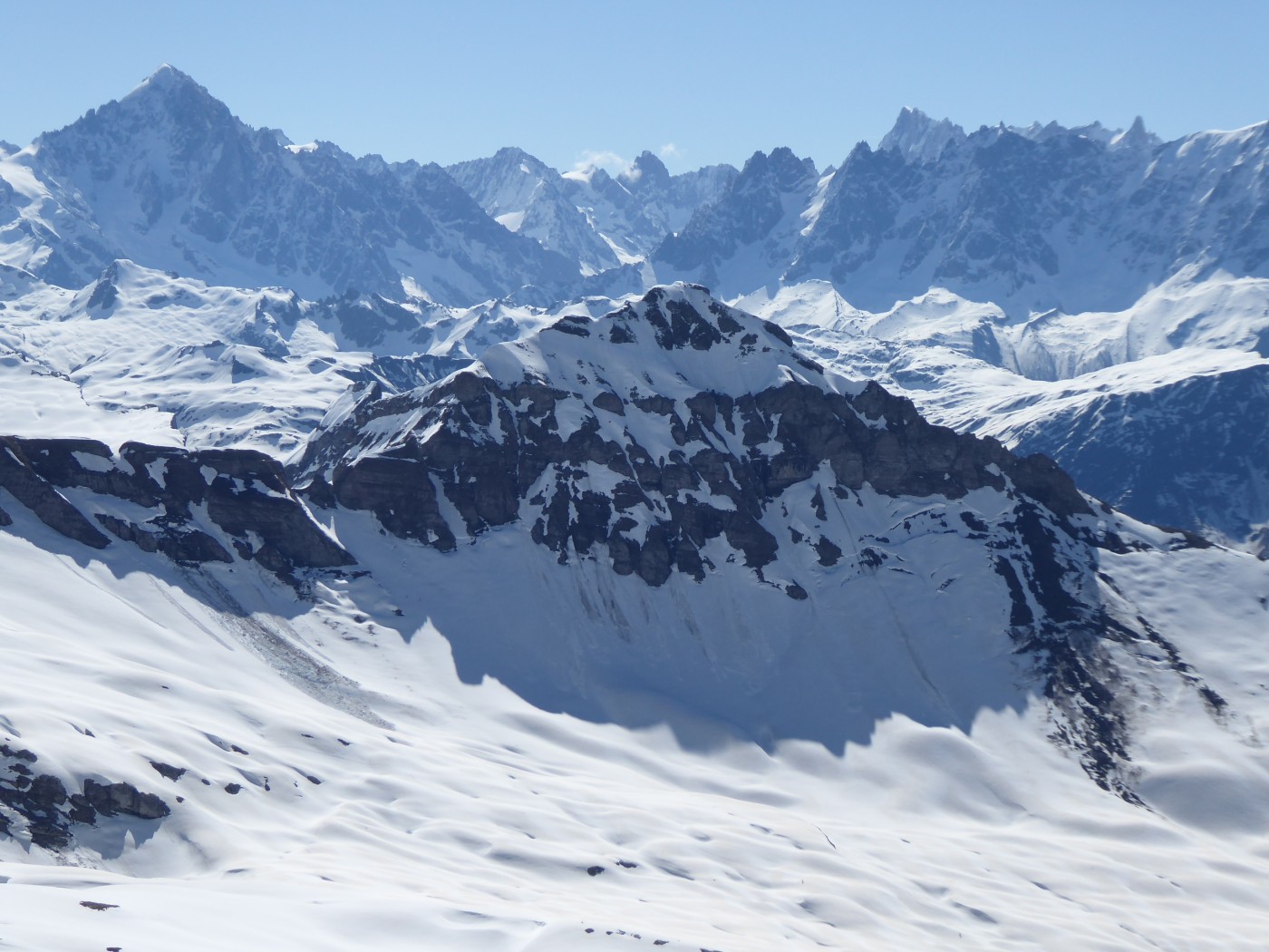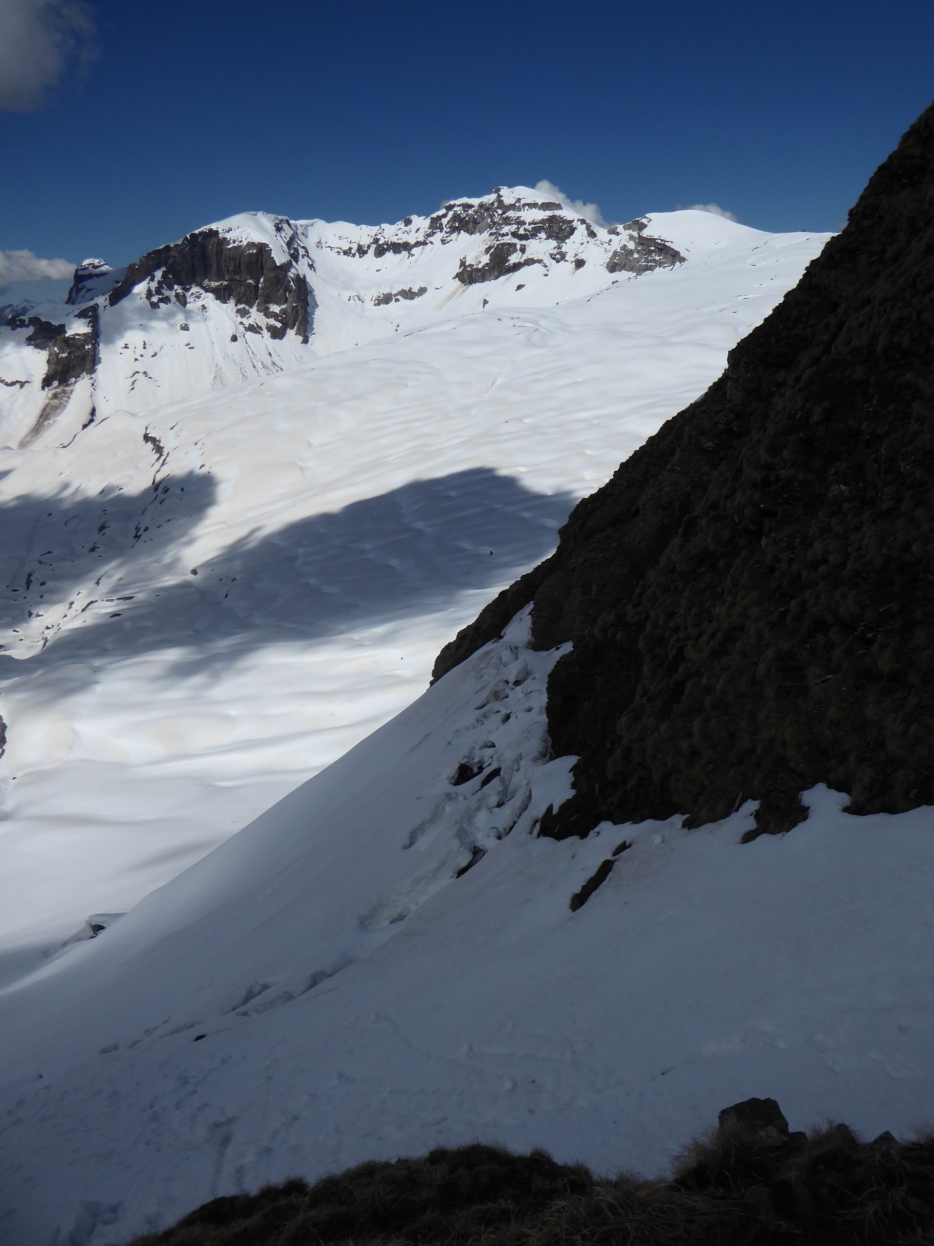 Bonnes conditions de ski avec une neige transfo juste un peu molle dans le versant E du col de la Portette.