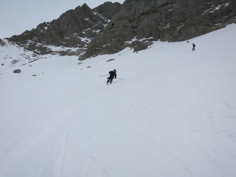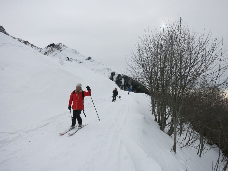 la neige est tassée sur la piste de montée (aucune touchette) , idem pour l'autre piste de descente, dans les dernières combes sous l'arcalod des restes de poudre, mais aussi de la neige fritée et dure,et pour le ski on révise ses gammes , la neige est capricieuse donc...