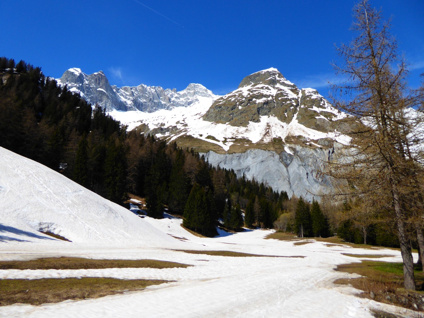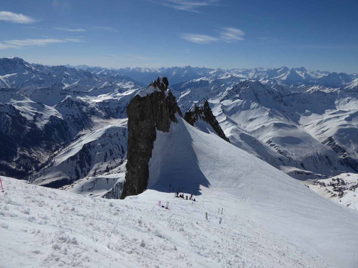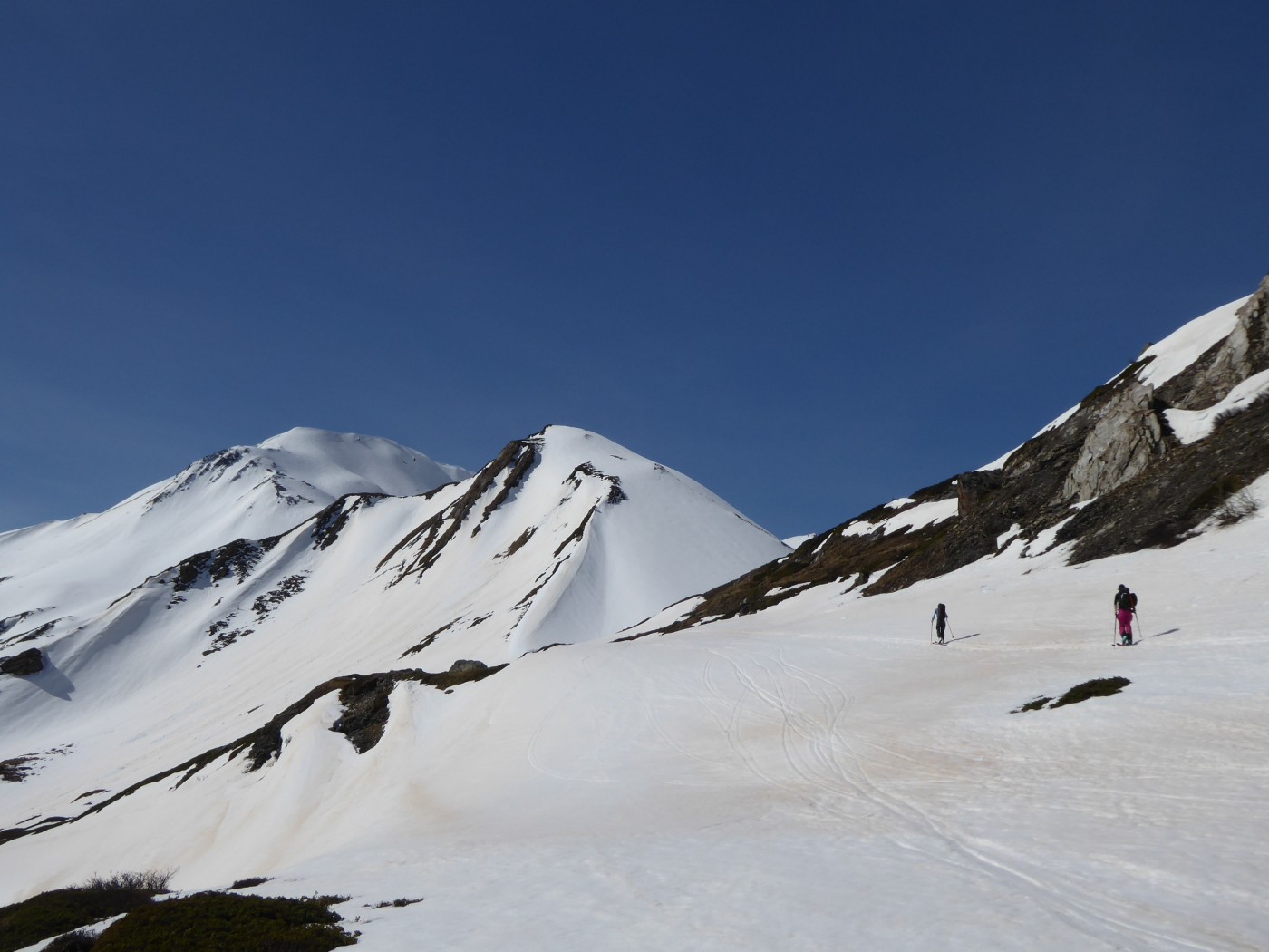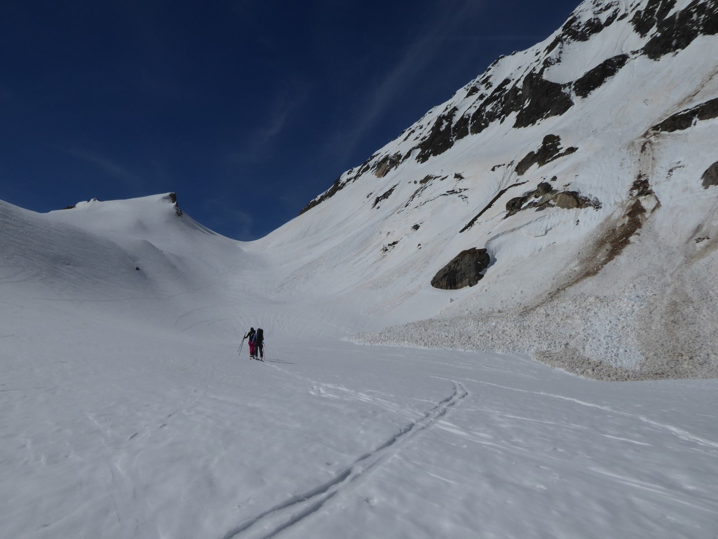 Neige transformée à tous les étages. Avec les températures printanières, dès 11h la traversée (SE) vers le petit col Ferret est déjà bien molle tandis que les pentes sud au-dessus de 3000 sont encore dures. Nombreuses purges dans les pentes raides E à SE.