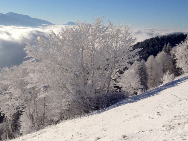 2 jours de traces consécutifs à Pravouta, ça se refuse pas, d'autant que le ski était bon dans l'ensemble malgré les touchettes, bien meilleur que la veille malgré qu'il ne soit pas tombé grand chose dans l'intervalle. Sans doute le début de tassement de la grosse chute rend les appuis meilleurs. A part ça, paysage de carte postale, seul en début de matinée, puis les groupes sont arrivés