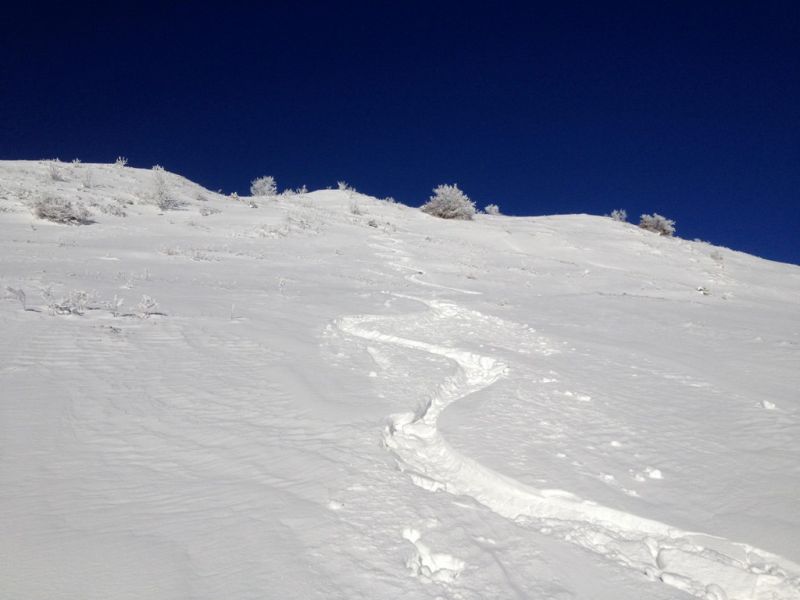 Travail du vent en versant Est du dôme, moins visible en Ouest, sauf sous la crête. La petit neige d'hier est moins ventée que la chute de samedi, mais présence de neige roulée en surface