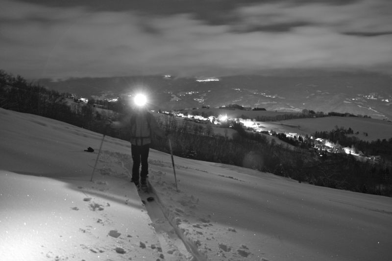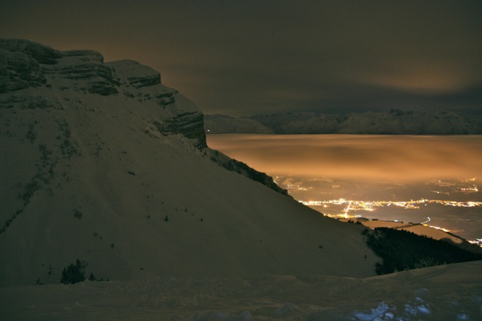 Quand on n'a pas pu en profiter en journée... Nocturne solo bien féérique donnant une dimension particulière à la course. Neige excellentissime de haut en bas.
