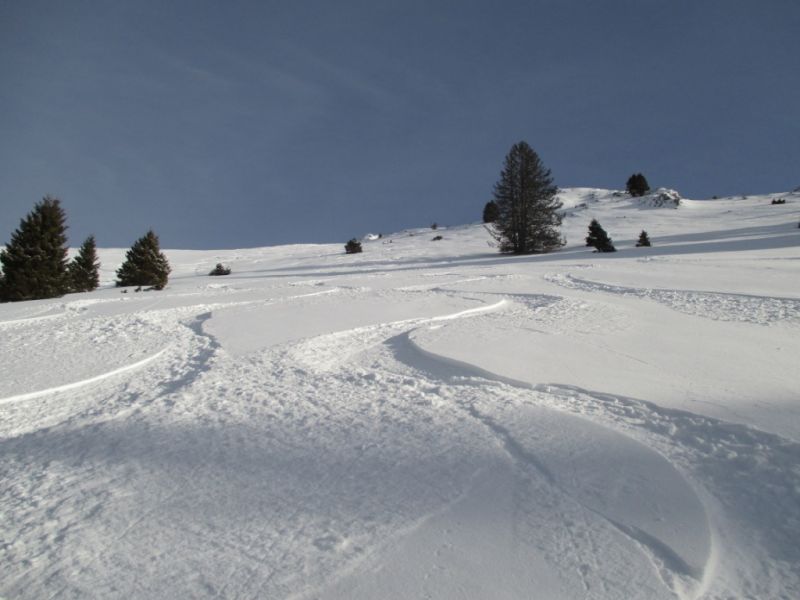 Aucun souci de stabilité => Il n'y a pas eu d'effet du vent lors de mon passage ; sans doute ne faut-il déjà plus tenir compte de cette remarque. Enfin, on ne touche plus sauf malchance. En revanche, on ne coupe toujours pas lacets à la descente sous 1400 m, la forêt restant encore peu enneigée.