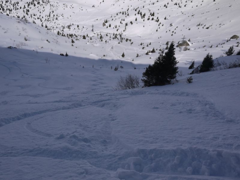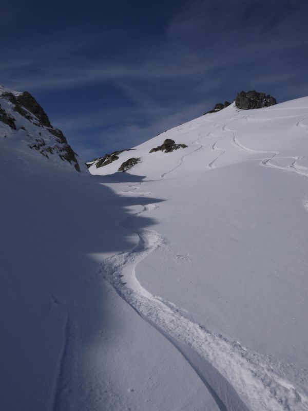 Essayer de rester à moitié endormi pour parcourir cette route du pré de l'Arc assez monotone il faut bien le reconnaître puis s'étonner que la neige tombée cette semaine soit restée si froide et en quantité pas négligeable dans ce coin. Vérifier la véracité de la phrase de volo: "il y a plus qu'une nuance entre le pas et le dome de la coche", skier deux fois la pente ouest du pas de la coche en se disant que la neige est un matériau extraordinaire!