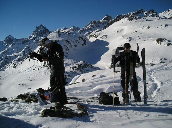 Une sortie qui a une drôle de saveur. Gros bruit d'avalanche vers le Replomb au moment de partir. AR d'hélico au dessus de nous; je pense à ceux qui n'ont pas eu de chance ces 2 jours. Skieurs à l'Aigleton.