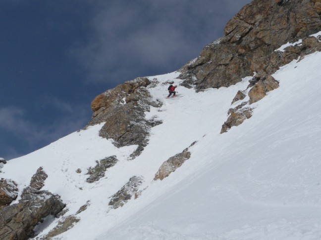 Sous 2200 pas de regel. Au dessus, neige dure avec 2 à 5 cm de neige fraîche. 30 derniers mètres non skié, car couche de neige dure (20 cm) sur gobelet, du coup vu l'expo, on a pas tenté le diable (A/R à pied). En sondant un peu en toute altitude, on trouve pas mal de gobelet...