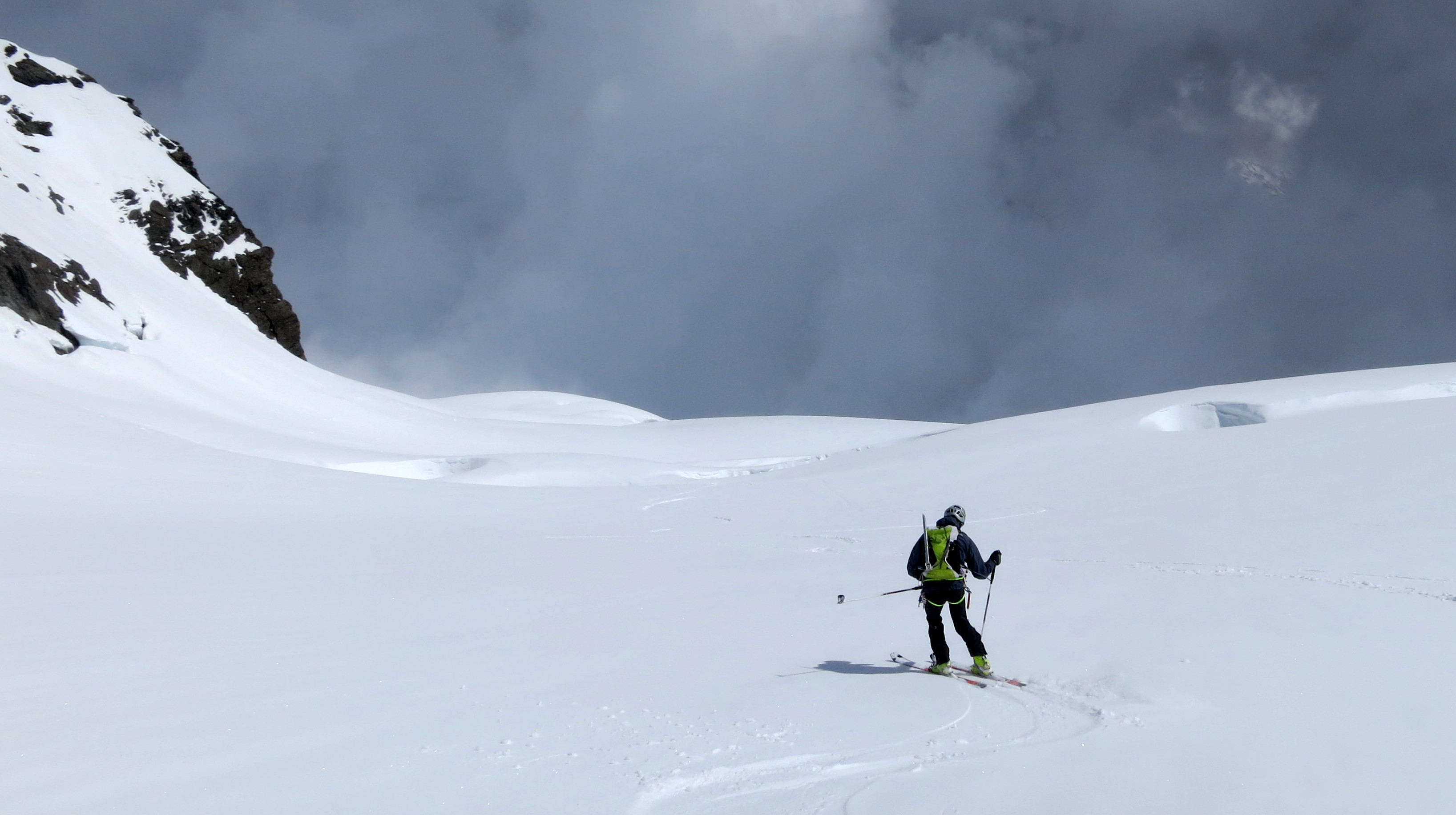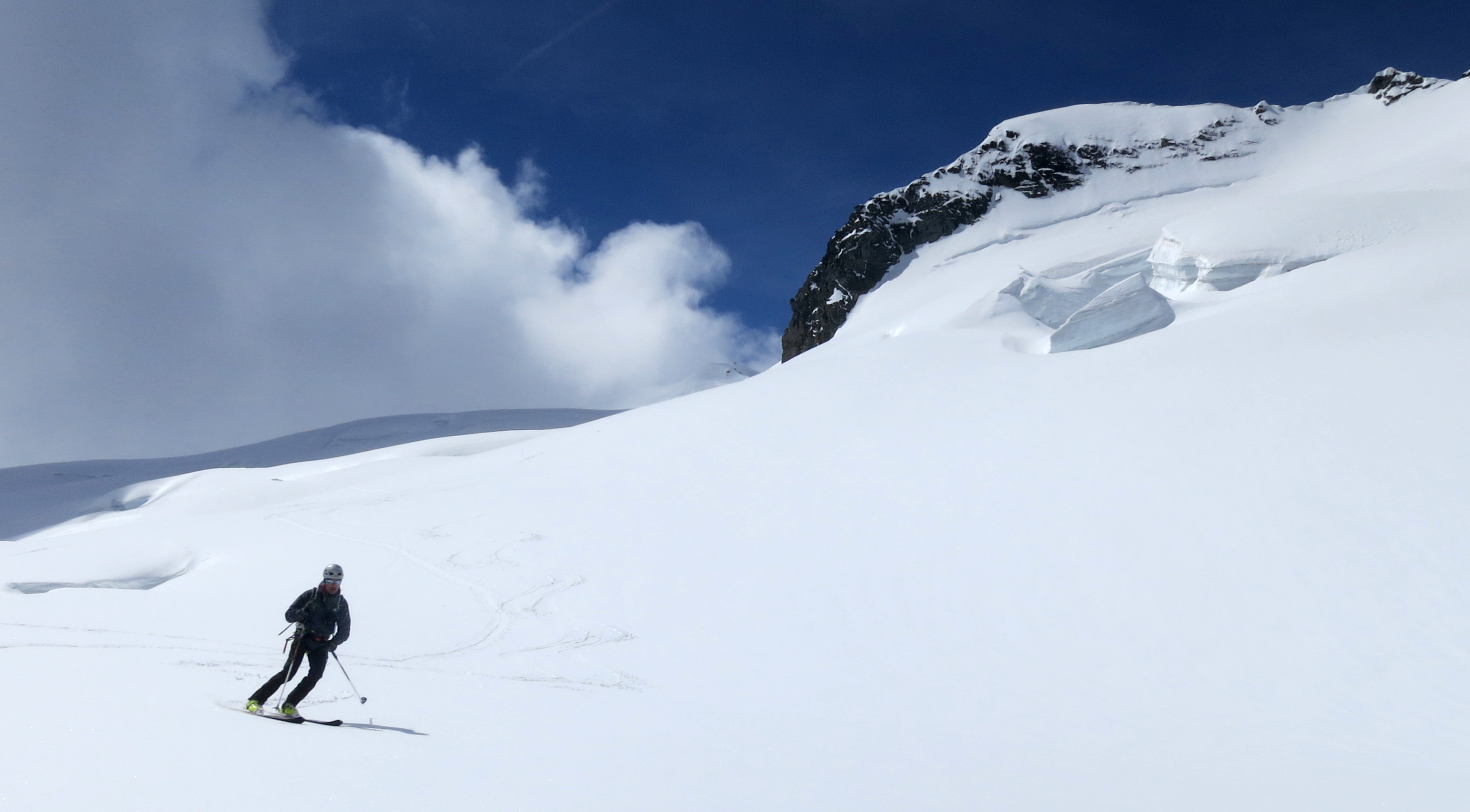 ras, glacier bien bouché. Ski continu jusqu'à 1950, déchaussage à 1650 moyennant un peu de bricolage et qq déchaussages