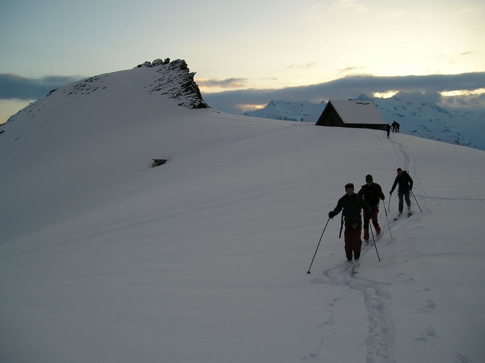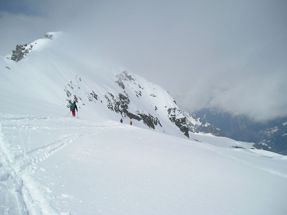 Dans la nuit de samedi à dimanche il a neigé 10 cm env. autour du refuge. Après avoir cru au grand beau, le ciel s'est couvert sérieusement nous obligeant a rebrousser chemin en route vers le Pourri à 3000 m sous le col des Roches. Ensuite ça s'est dégagé et ça a chauffé fort. Montée/descente au refuge à ne pas faire trop tard (bien pourri - grosses coulées).