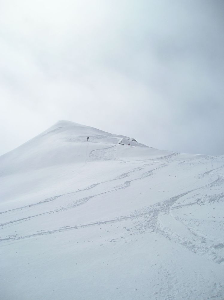Du refuge partir plein sud en traversée pour rejoindre le glacier sud de la Gurraz puis le nord. On passe au pied du mont Turia puis du Pourri (dans les nuages ce jour là). On remonte tout le glacier en se tenant rive gauche jusqu'au sommet petite pyramide neigeuse qui se redresse un peu sur la fin. D+= 1200m. Glacier bien bouché