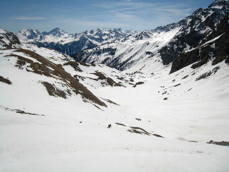 Du Gd Planay, retour par la RD plus exposée aux chutes de pierres et coulées mais bien plus skiante