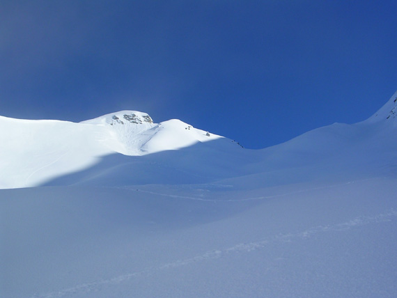 Bonnes accumulations aux abord des crêtes, un belle reptation en versant sud ouest (rive droite du Col des Porthets).