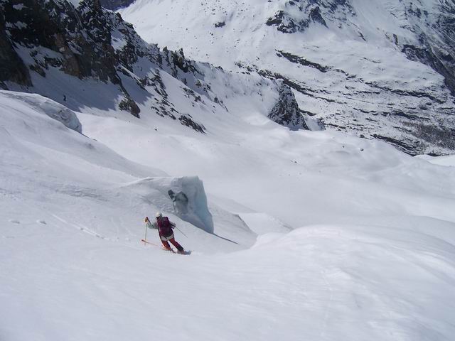 Course alpine de grande classe. Départ/retour skis aux pieds si on se gare au terminus (15' sinon), des pentes toujours soutenues, un cheminement glaciaire magnifique, et un final court mais raide (50° sous le bombé) que l'on peut éviter en repassant par le col. Avec comme seuls spectateurs des hardes de chamois et quelques marmottes