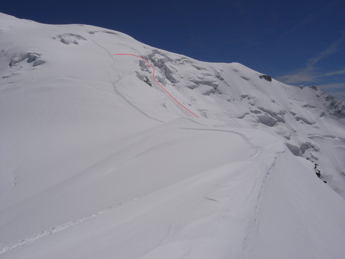 Un bel itinéraire pour revenir du Mt Blanc ! Des pentes superbes à skier, lisses, larges et homogènes à 40°. De courts passages à 45° à l'entrée et à la sortie. Tout de même 800m de couloir. La fonte des séracs fera peut-être devenir classique cette descente.