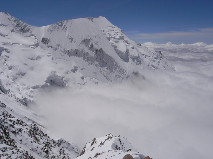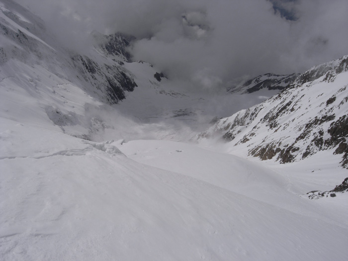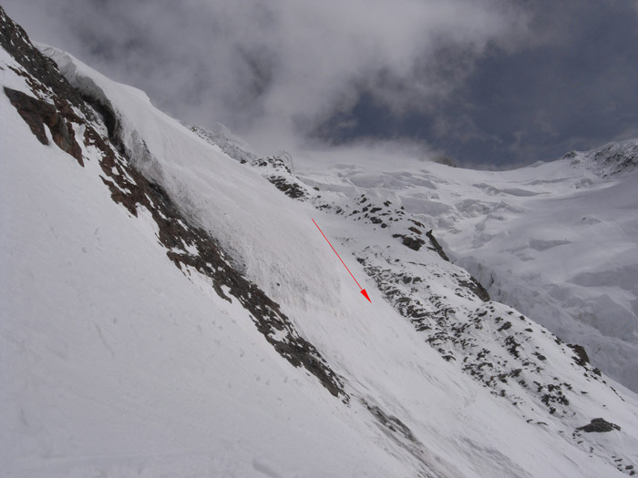 Le gros problème vient des séracs : il faut les surveiller aux jumelles. Si la pente reste enneigée, c'est qu'ils ne tombent pas.