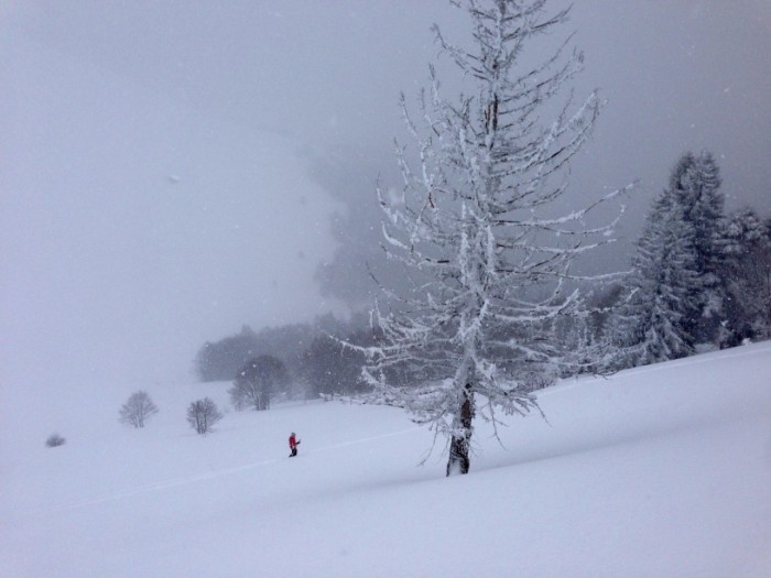 il neige en continu sur la Chartreuse depuis hier, les chutes ne sont pas importantes mais avec le froid, aucun tassement donc l'epaisseur finit par être significative surtout sur l'intérieur du massif avec 40 cm de haut en bas du Giclard. Quant à la qualité, à chaque chute on se dit ''tiens elle est encore plus légère que la précédente...''