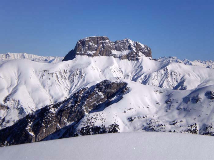 Partis du tout début de la route forestière du col la Pierre en raison du fort enneigement. Classique du col la Pierre en optant à la fin pour sa doublure nord. Montée sèche par l'arête sud du Dos de Chameau. Fin à skis. Descente sud-est puis est pour gagner l'Encoungoura. Descente puis retour par la piste des Vieux et la route forestière de montée.