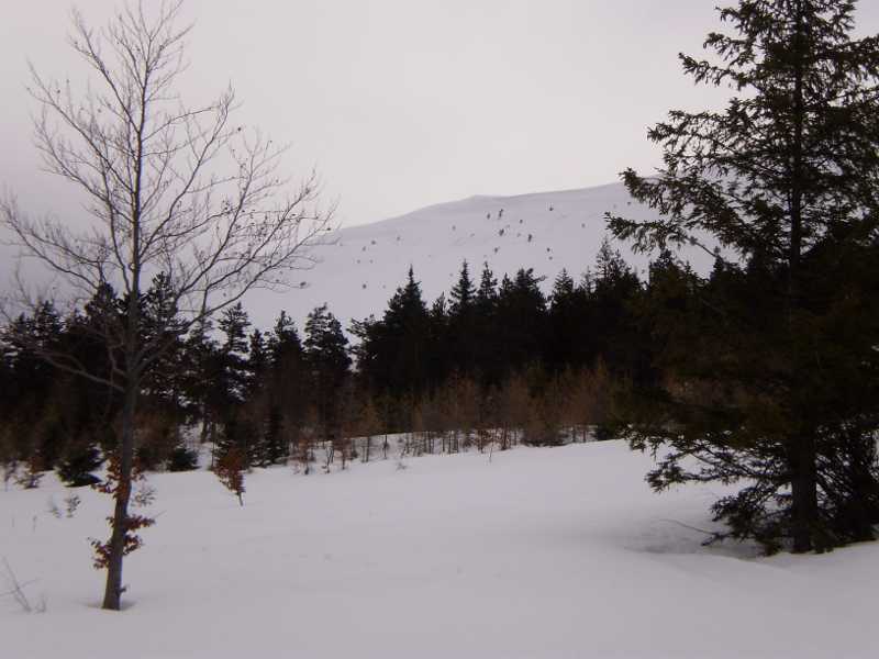 Risque très faible, puisque la neige a été bien humidifiée et regelée. De plus, les pentes ne sont pas très fortes.