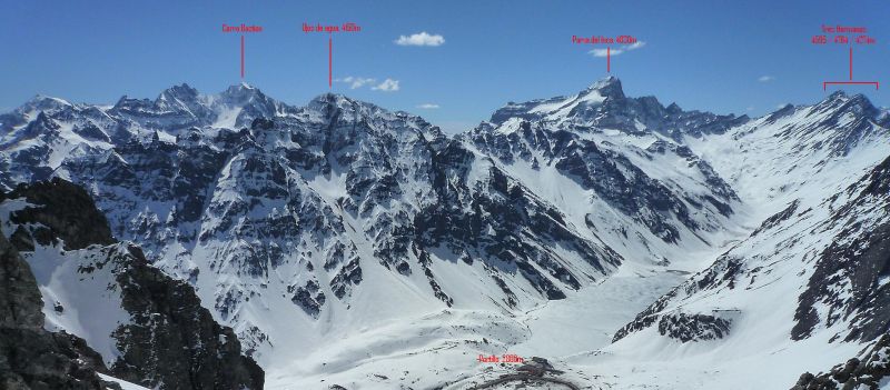 La vue sur le secteur est époustouflante. La Parva del Inca (cf photo), est très séduisante, mais la météo ne nous laissera pas le temps d'aller la visiter (2 jours nécessaires).