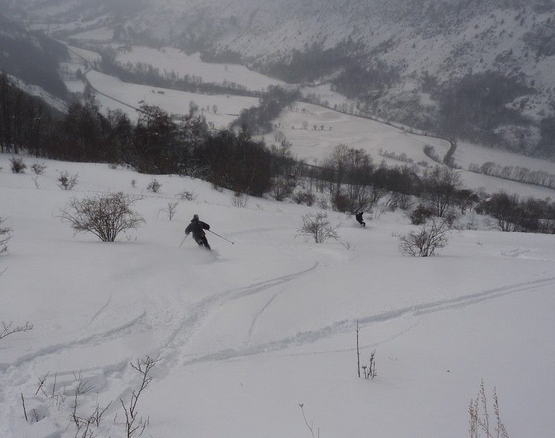 A 1000m l'enneigement est moindre ici par rapport à la chartreuse par exemple. Il faut attendre 1200/1300 environ pour avoir une bonne sous couche. De 05 en bas à 45 de neige très légère et peu travaillée par le vent sous 1800. Au dessus des zones cartonnées et surement quelques plaques plus haut (on s'est arrêté vers 2100).