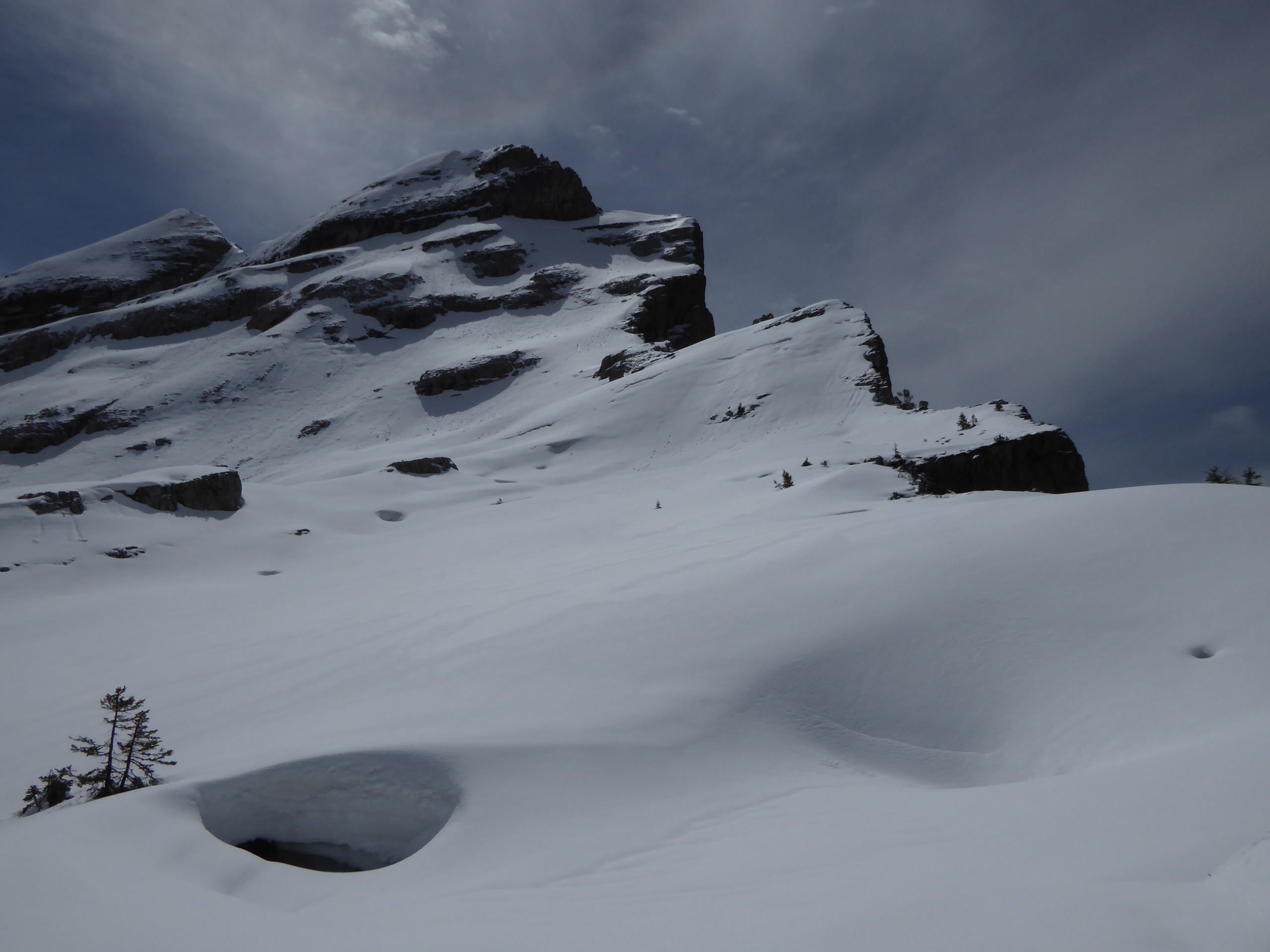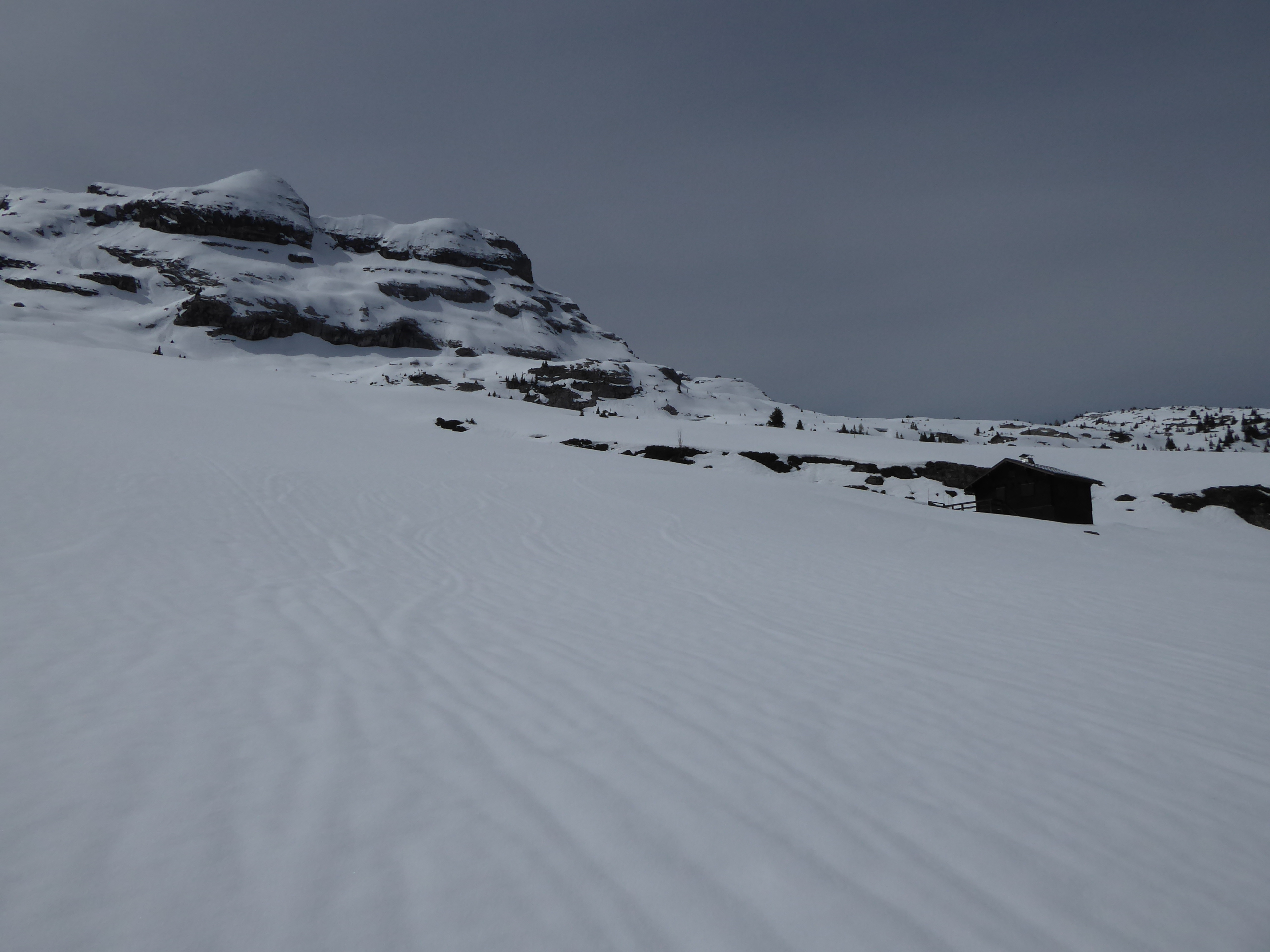 La station a fermé dimanche 21 avril. Du monde un peu partout pour profiter de la neige et de la fenêtre météo mais c'est tellement vaste qu'on ne se gène pas. L'enneigement est bon mais plusieurs crevasses du lapiaz apparaissent quand même.