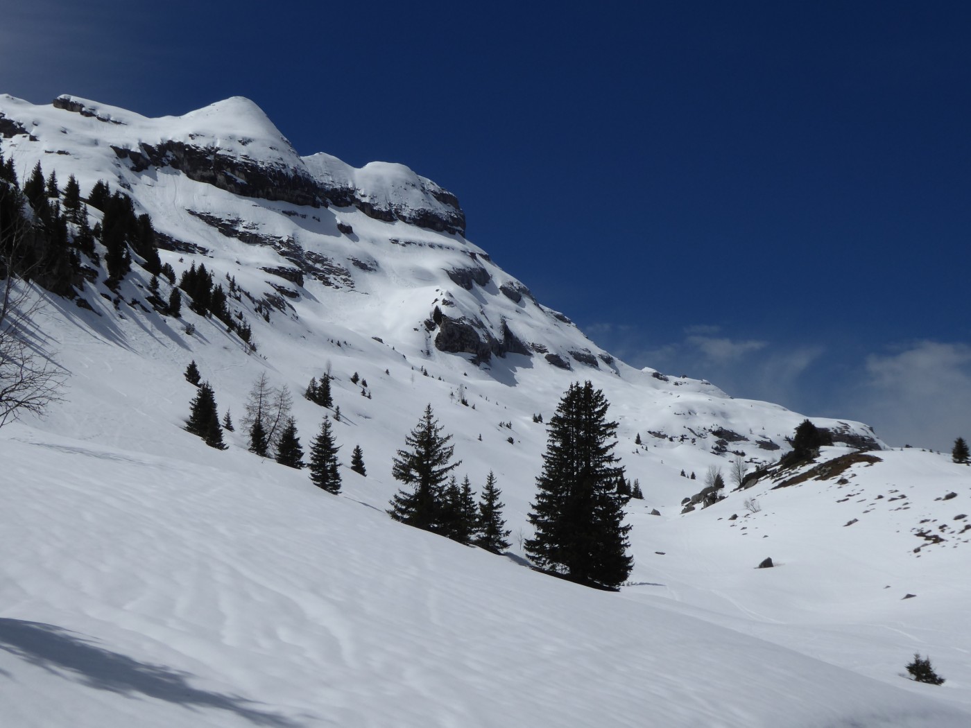 Il a neigé quelques cm aux altitudes parcourues. Cette neige s'est vite humidifiée. Neige collante à la descente vers midi.