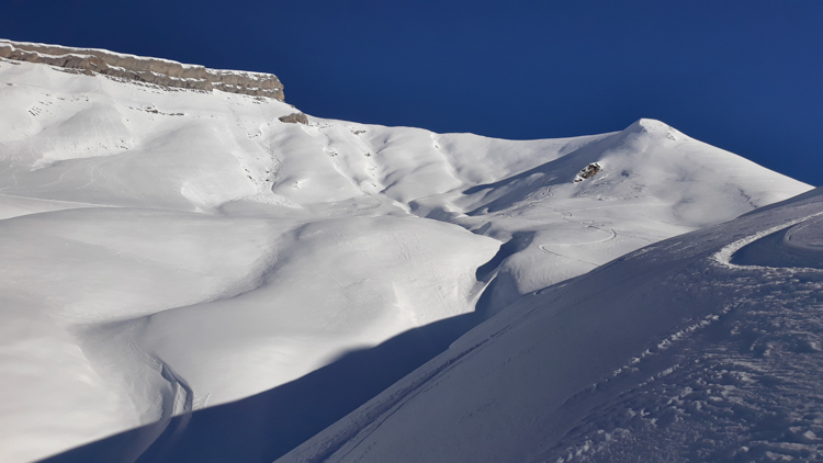 Merci aux godilleurs de la veille pour la trace, il reste de belles zones abritées du vent pour se faire plaisir