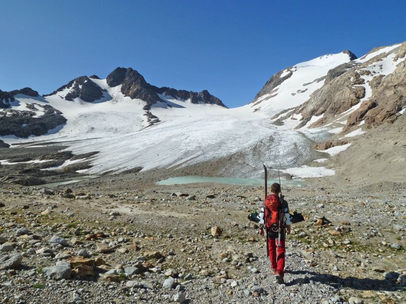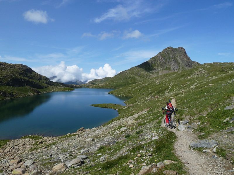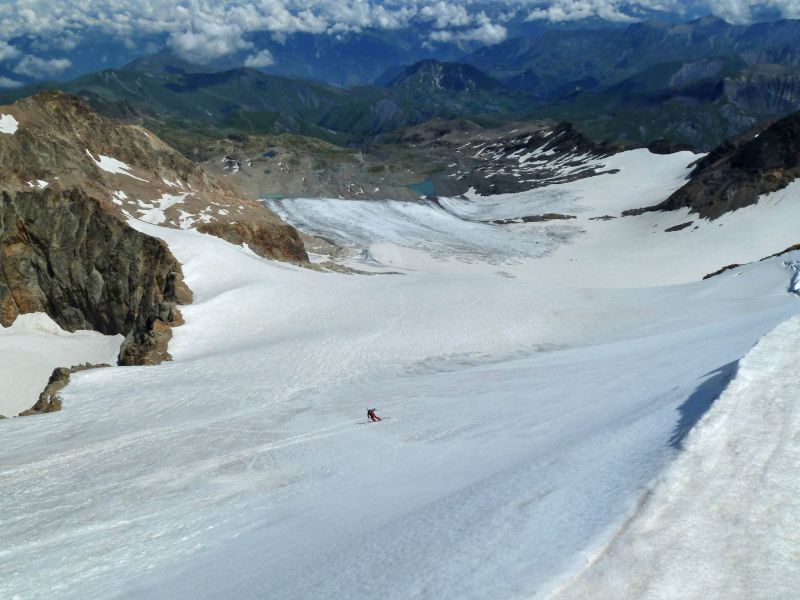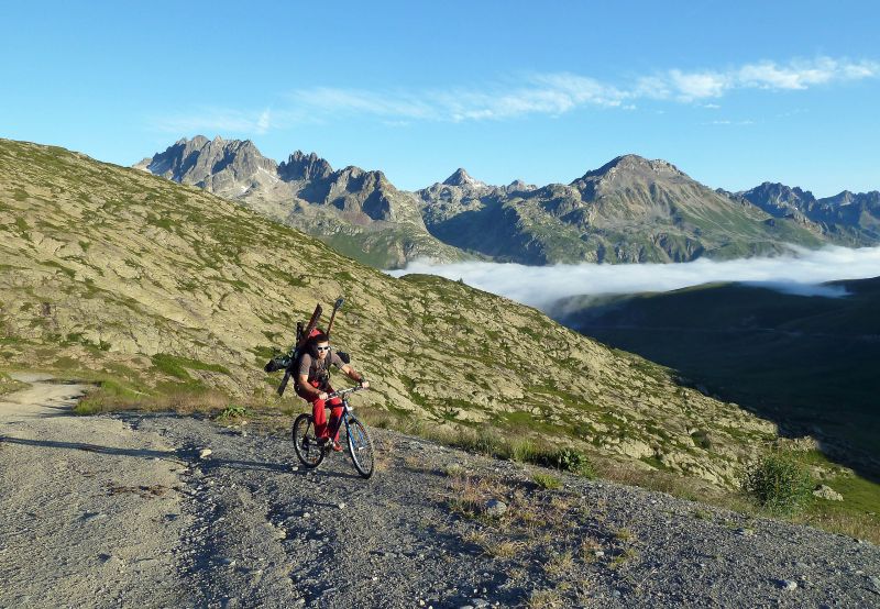 Croix de Fer -> lac Tournant (pause vélo à 2500 m) -> Etendard en a/r -> col du Grand Sauvage en a/r -> déchaussage à 2700 m au pied du glacier -> retour à pied + vélo.