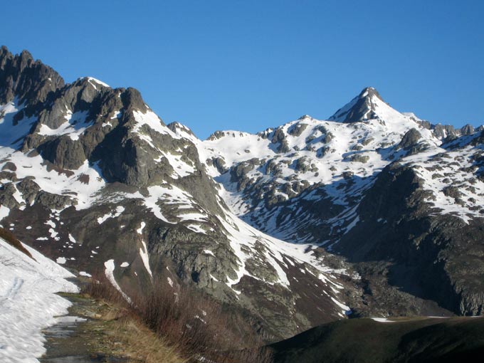bon regel, faible dégel. neige portante sur tout l'itinéraire. peu de neige récente ici, seulement sur la haut et rapportée par le vent. Les lacs sont bien gelés et avons traversé sans souci le Bramant.
