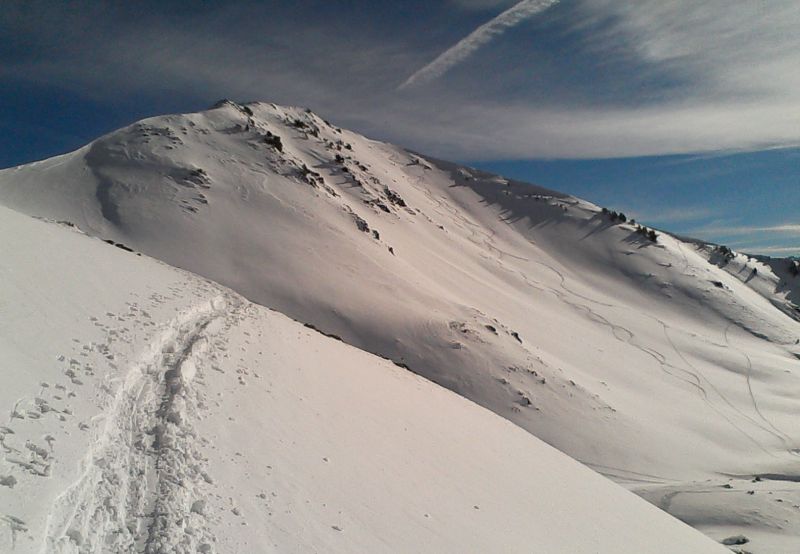 A8 jusqu'à 1930m en versant est, les 100 derniers m de D- sont les meilleurs puis remontée au col des Lessines puis de la Botte. De là la petite arête de la Botte puis facette ouest et remontée vers la Croix par les pistes sans interpellation.