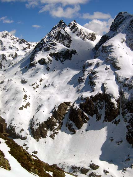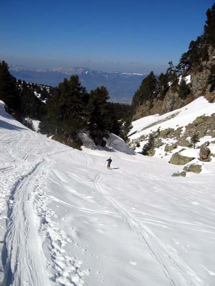 Solitude absolue à part un randonneur croisé dans les Pourettes qui descendait quand je montais. Bonnes conditions de ski, malgré quelques boules dans la pente nord de l'Eulier mais qu'on peut eviter en changeant de couloirs. Tres bon ski dans les Pourettes transformées, sans aucune touche.